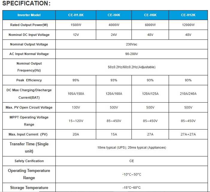| Product Name | Cworth Energy 12kWa/48v Hybrid Inverter H12KL-12048 |