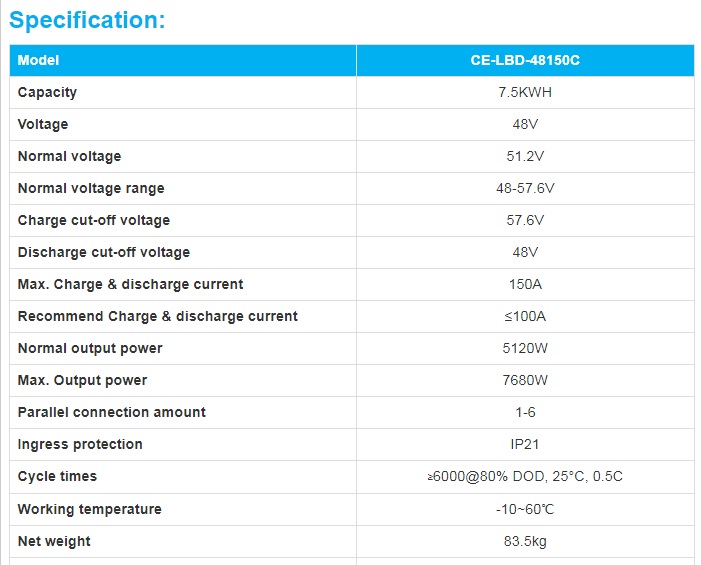 Product Name | Cworth Energy 7.5kwh/48v LiFePO4 Battery |