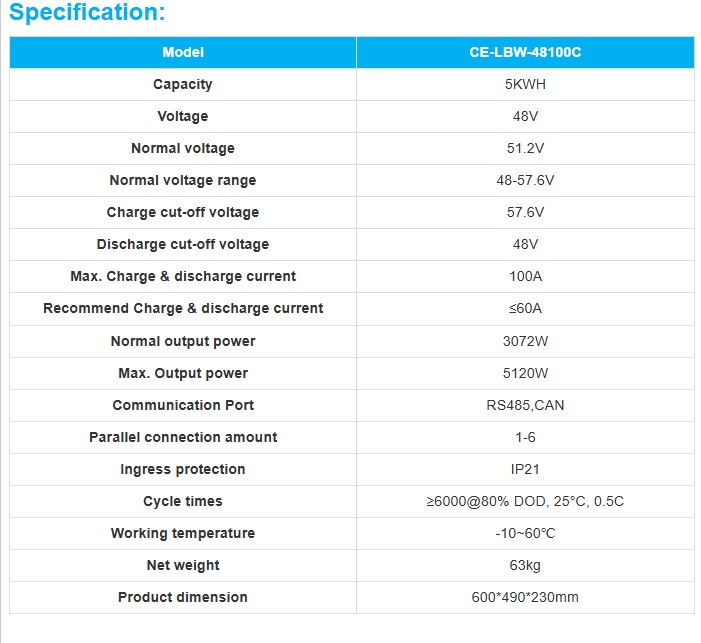 | Product Name | Cworth Energy LiFePO4 Lithium Battery LBW-48100C |