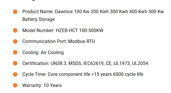 | Product Name | Dawnice ESS 100kWh - 500KWh Solar Battery Storage Indoor |