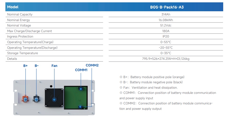 • Battery Module Qty In Series BOS-B-Pack16-A3 = 15Units