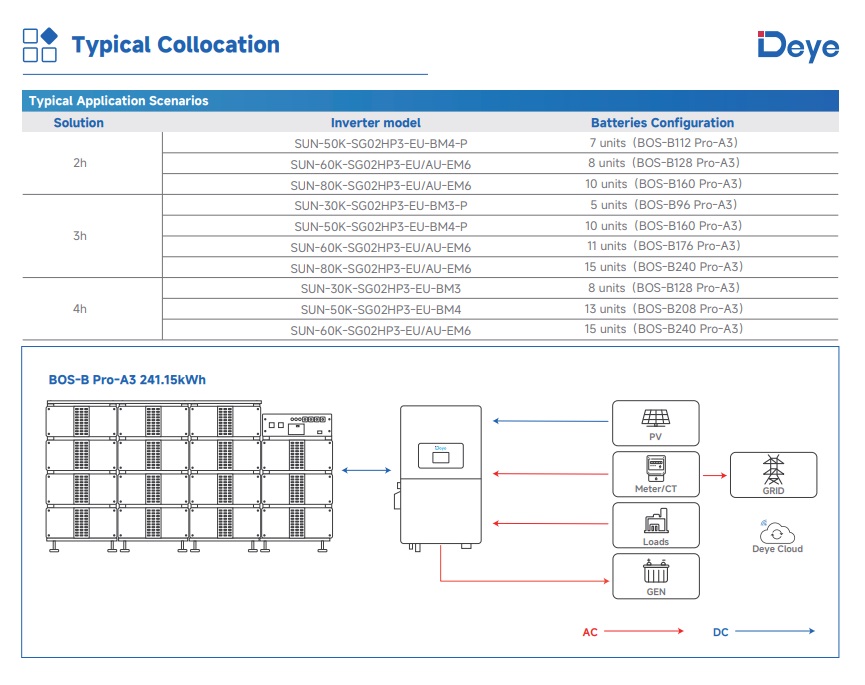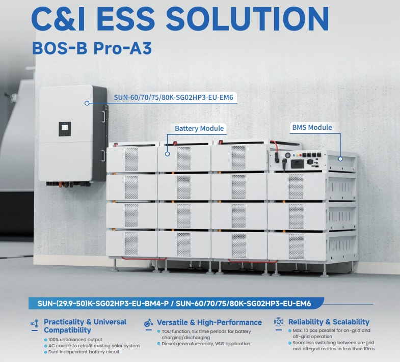 Product Name Deye 50kW/209.04kWh SUN-50K-SG02HP3-EU-BM4/BOS-B Pro-A3 Commercial & Industrial Applications