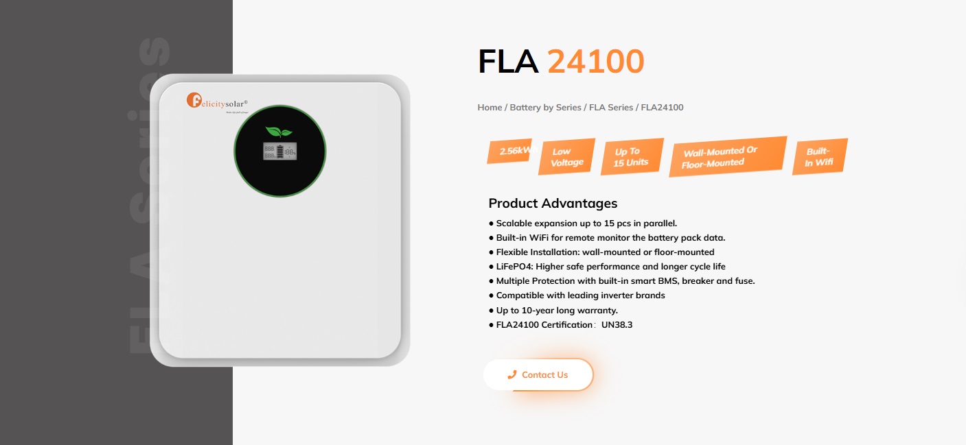 | Product Name | Felicity FLA 2.56kWh 24V 100Ah Lithium Ion Battery - FLA 24100 |