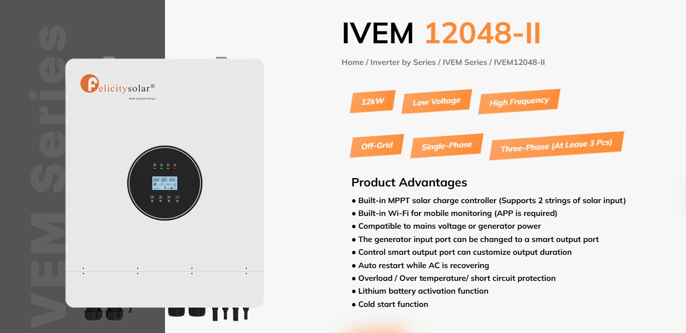 | Product Name | Felicity IVEM 12KVA 48V Inverter Single Phase off Grid Solar Inverter IVEM12048 |
