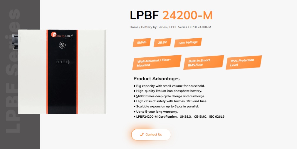 | Product Name | Felicity LPBF 5kWh 24V 200Ah Lithium Ion Battery LPBF-24200-M |