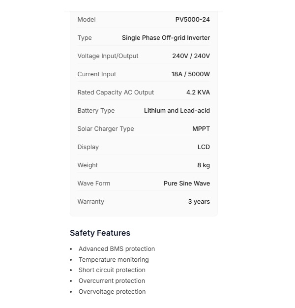| Product Name | Haisic 4.2kVa PV5000-24 Inverter Smart Solar Inverter System |