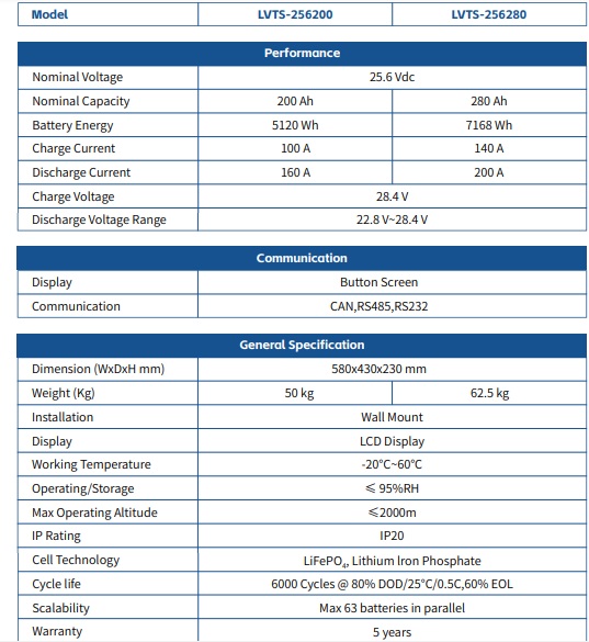 | Product Name | LVTopsun LVTS-256280 Residential Photovoltaic Energy Storage Lithium-Ion Battery |