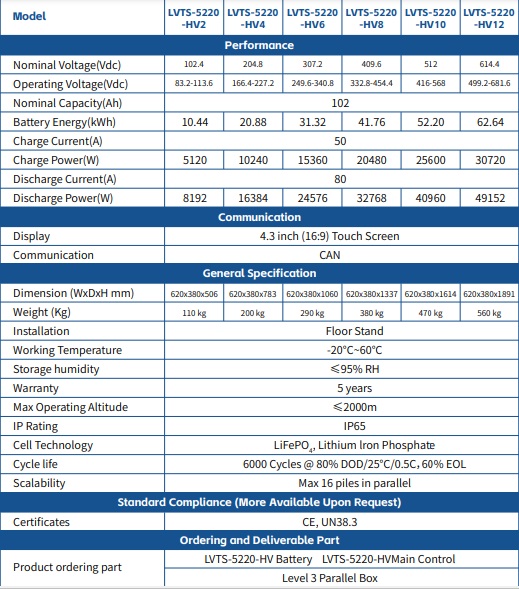| Product Name | LVTopsun LVTS-5220-HVX Residential BESS / Photovoltaic Energy Storage Lithium-Ion Battery |