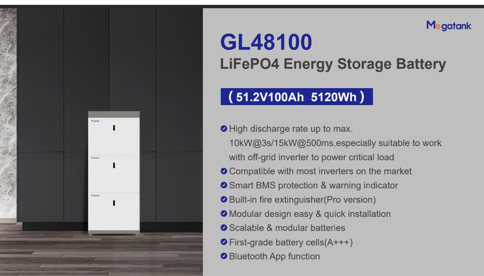 Megatank GL48100 5kWh 51.2v 100Ah LiFePO4 Energy Storage Battery