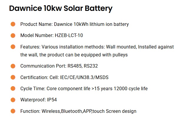 Product Name Dawnice 10kWh/48v Wall Mounted Lithium Battery Home Energy Storage