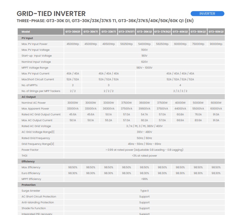 Product Name | LIVOLTEK PURE HYBRID THREE PHASE 60KW GRID-TIED INVERTER GT3 |