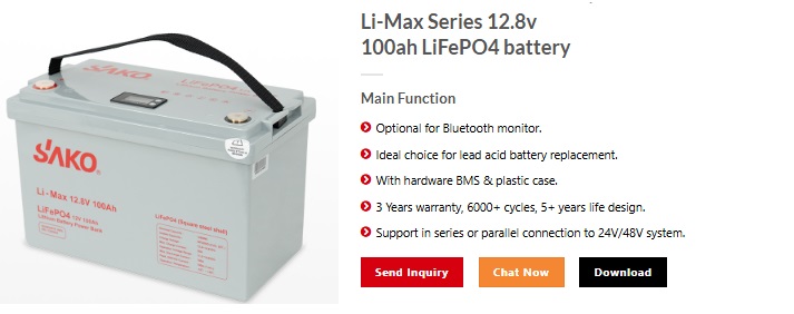 | Product Name | SAKO Li-Max Series 12.8v - 100Ah LiFePO4 Battery |