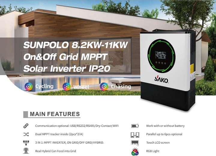 SAKO SUNPOLO 11kVa 48V Off Grid Dual MPPT Hybrid Solar Inverter