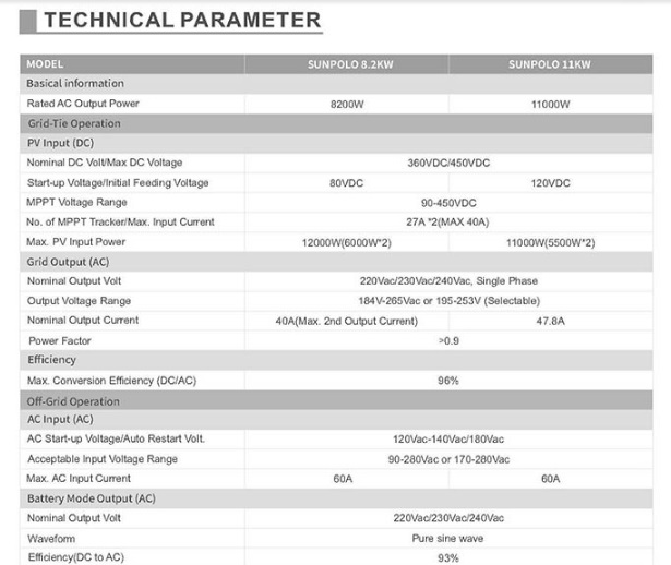 | Product Name | SAKO SUNPOLO 11kVa 48V Off Grid Dual MPPT Hybrid Solar Inverter |