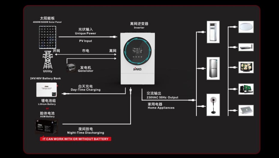 Sako SUNPOLO 6KVA/48V High Frequency Hybrid Inverter