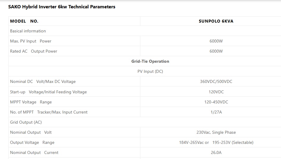 | Product Name | Sako SUNPOLO 6KVA/48V High Frequency Hybrid Inverter |